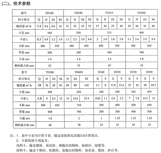 TD250皮帶式斗式提升機(jī)適用輸送物料:松散密度ρ<1.5t/m3的粉狀、粒狀、小塊狀的無(wú)磨琢性、半磨琢性物料。